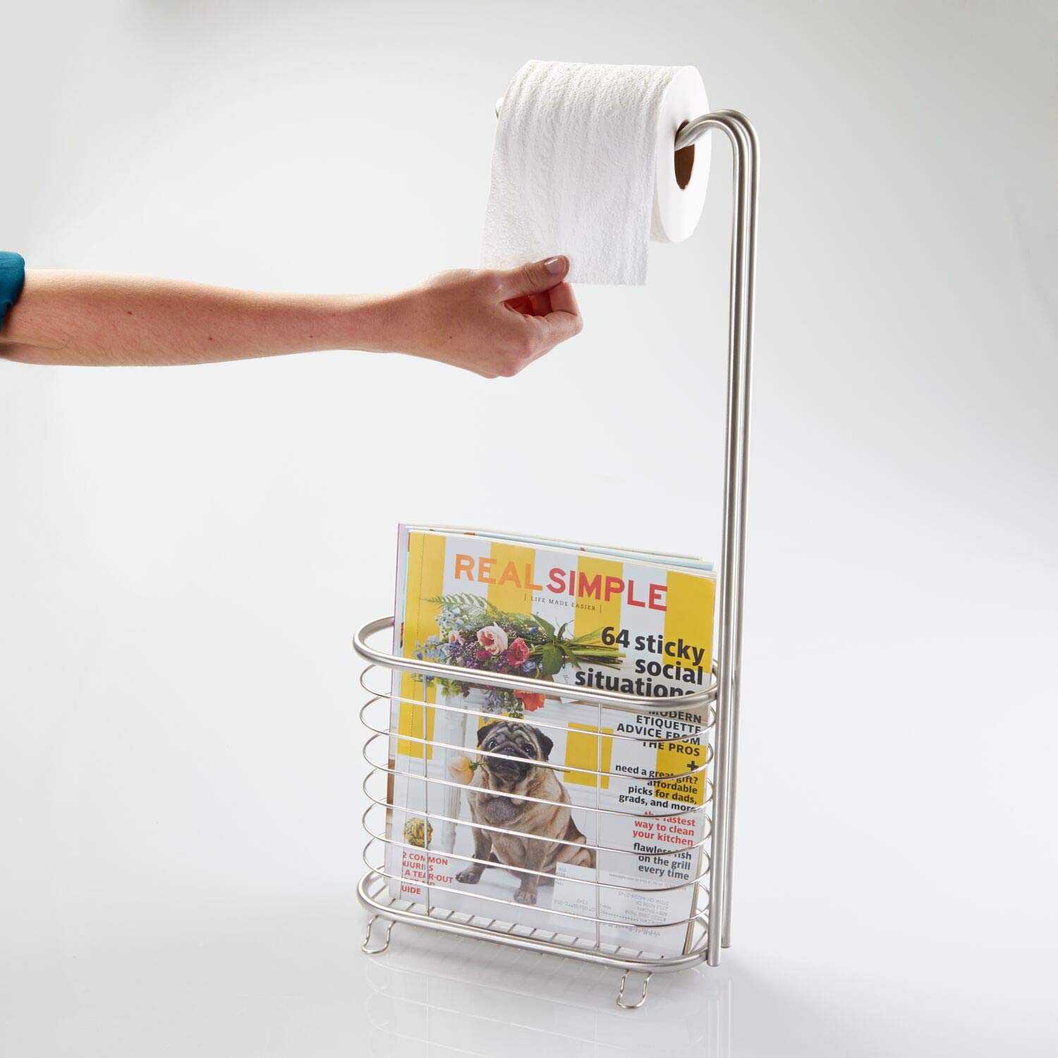 Idesign Axis Free Standing Toilet Paper Holder And Newspaper And Magazine Rack For Bathroom Chrome from images-na.ssl-images-amazon.com Gatco® latitude ii standing toilet tissue holder. Store your magazines, newspapers, books, and other bathroom reading material in one convenient place to make organization a breeze! With these toilet paper holder ideas for 2021, there's only one question left: Free standing stainless steel toilet tissue paper roll magazine holder dispenser. Repurposed magazine holder turned toilet paper storage. Paint this in a matching or even a contrasting color to make it stand out. Metal toilet paper holder with magazine rack. Rectangle chrome toilet roll holder stand with magazine rack.